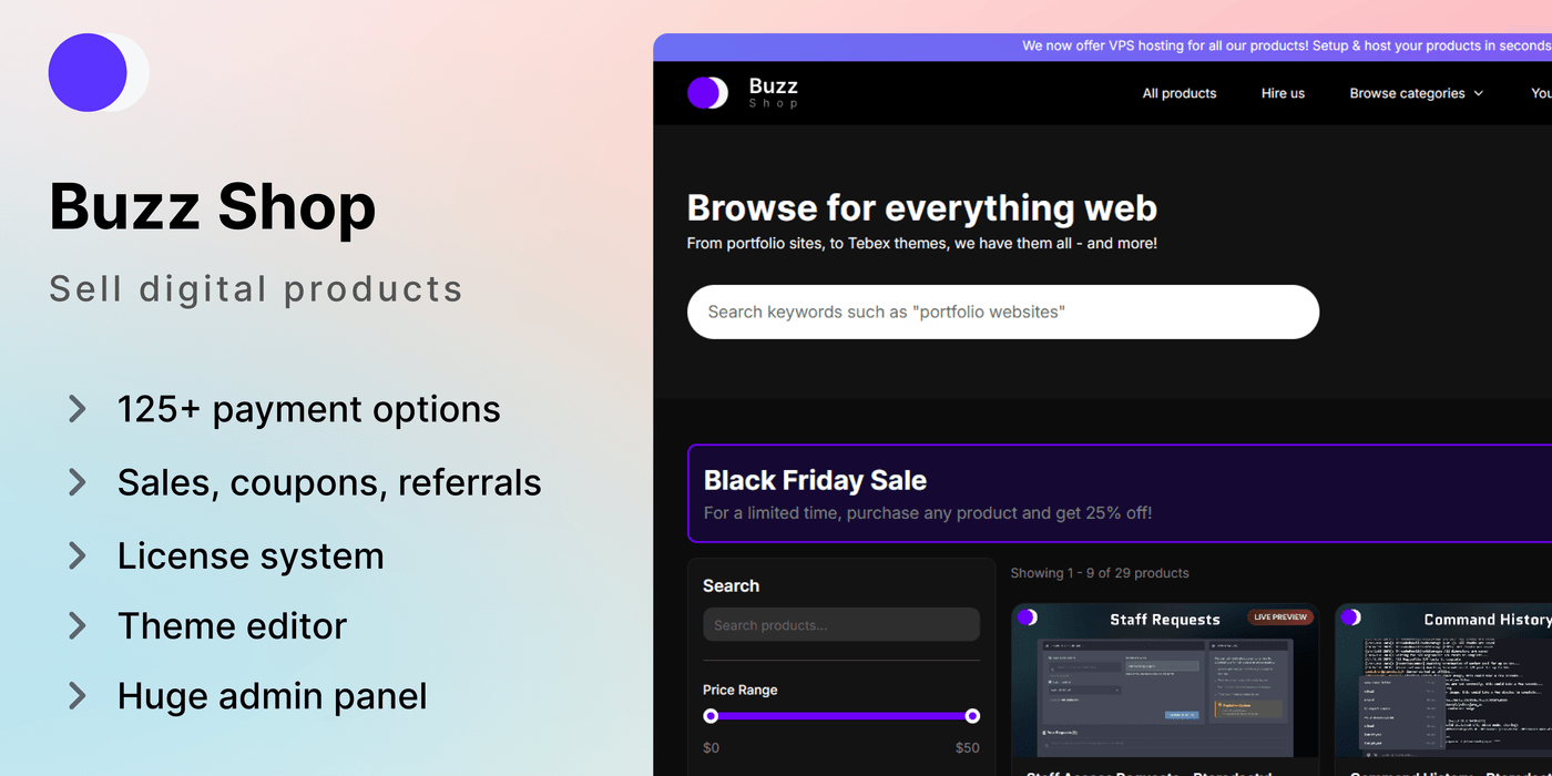 From portfolio sites, to Tebex themes, we have them all - and more!